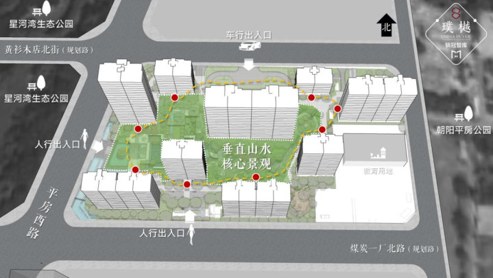各种干扰因素下,项目往往被推着往前走;想要形成自己完整的体系化思考,可以说是难度³。所以我们来看看璞樾,这个项目在产品规划阶段,所面对的土地本身,就先天自带巨大的诱惑³:地块的西侧,一路之隔就是星河湾生态公园:
