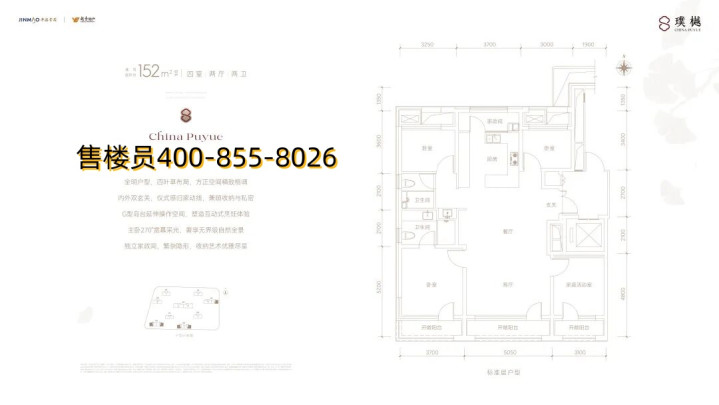 我们来看下璞樾的户型设计,以最小的152㎡为例: