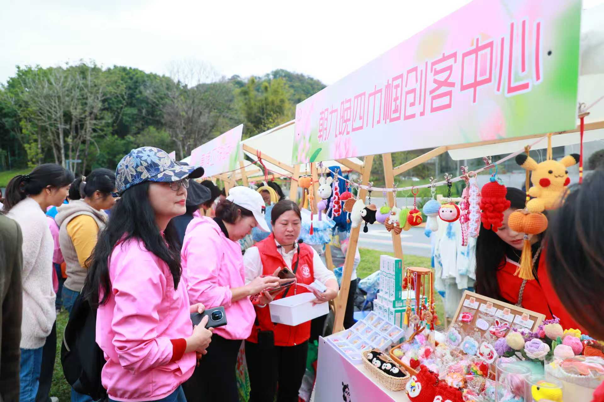 三月的迳下村,春水初生,新绿萌动。近日,由黄埔区妇联、龙湖街道办事处、知识城集团主办的纪念“三八”国际妇女节116周年主题活动——“融合‘两业’新图景,绽放巾帼她力量”徒步活动暨“她经济”消费集市在这里热闹开启。